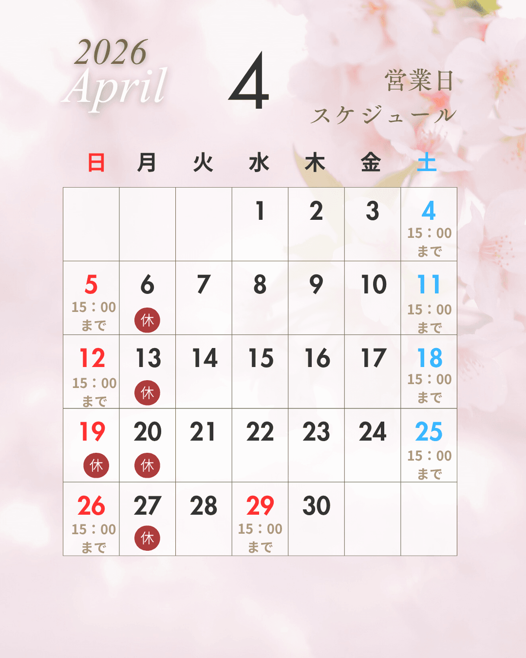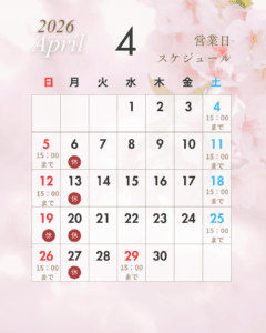 スタッフブログ 2026.03.31 2026年4月の営業日 最近はだいぶ暖かくなってきましたが 朝晩の寒暖差が激しい日もあります。 体調管理はしっかりとケアしましょう。 記事のタイトルとURLをコピーする Post Share Hatena Line RSS feedly Pin it note 春に増える胃腸トラブル…東洋医学でやさしく整えるケア 前の記事
